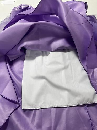 Праздничное детское платье цвета лаванды 6-7лет - Силуэт: пышная юбка миди из многослойного фатина с оборками по низу. - Верх: без рукавов, лиф декорирован объемными фатиновыми рюшами и легкими пе...