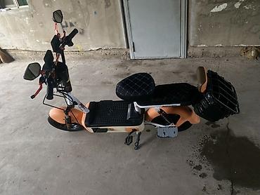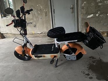 Электровелосипед/электроскутер городского типа - Компактная городская модель с низкой рамой и платформой для ног - Электропривод заднего колеса, бесшумный ход - Два сиденья: основное и пассажирско...