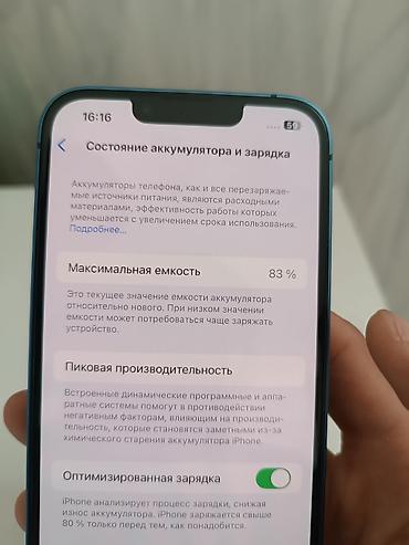 IPhone 13, Б/у, 128 ГБ, Синий, Защитное стекло, 83 %