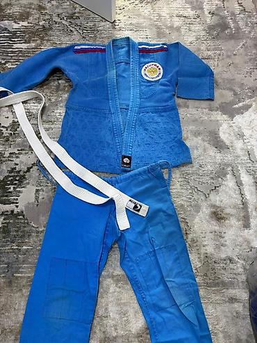 Кимоно для дзюдо/самбо FIRUZ, синее. - Комплектация: куртка (плотное плетение «рисовая корка»), штаны на резинке/шнурке, пояс. - Размер по бирке: 140 (для роста около 135–145 см). - Материал: хлоп...