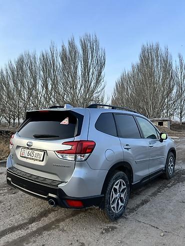 Subaru Forester (пятое поколение), серебристый кроссовер. Основные особенности: - Полный привод Symmetrical AWD. - Атмосферный оппозитный бензиновый двигатель. - Автоматическая трансмиссия (вариат...