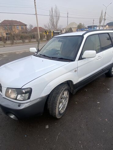 Subaru Forester, белый кроссовер с серыми некрашеными бамперами и молдингами. 5‑дверный кузов, легкосплавные диски, рейлинги на крыше, противотуманные фары. Просторный салон бежево‑черного тона, передние сиденья с мягкими чехлами, мультиконтурные коврики, центральный подлокотник. Передняя панель с мультимедийной магнитолой, кондиционер, электрические стеклоподъемники, электрорегулировка зеркал, подушки безопасности. Автоматическая коробка передач, полный привод Subaru, высокий дорожный просвет. Отлично подходит для города и загородных поездок: удобная посадка, большой багажник, обзорные стойки и практичная пластиковая защита по периметру кузова.
