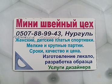 Требуется заказчик,Швейный цех. Шём женские детские платья спортивки. Изготовление лекало+дизайнерские услуги Нургуль