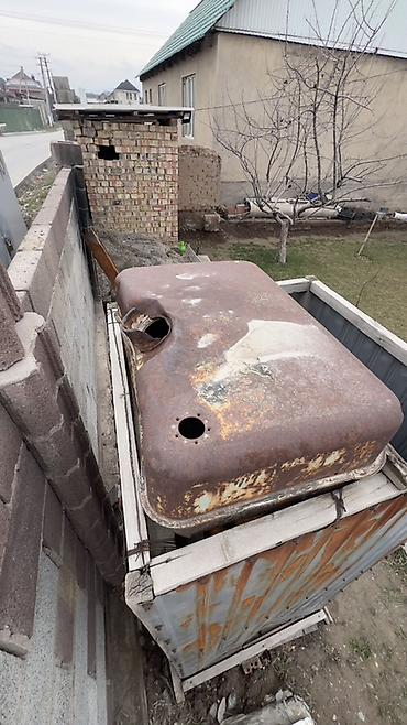- Бак для воды: металлический, плоский, размещается на крыше кабины (виден штуцер/отверстия под залив и слив).