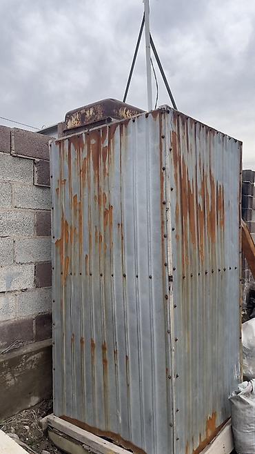 Уличная металлическая душевая кабина с баком - Материал: профлист/листовой металл на каркасе. - Конструкция: отдельностоящая кабина с распашной дверью, вентиляционным проёмом сверху и вырезом под ...