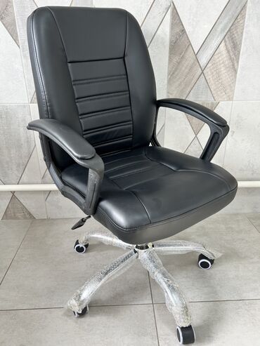 Офисное кресло, Новый, С колесиками, цвет - Черный, Экокожа, Самовывоз, Платная доставка