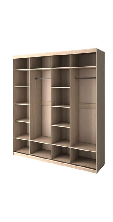 - Удобная внутренняя организация: секции разной ширины и глубины, угловые полки, низкие ниши для обуви.