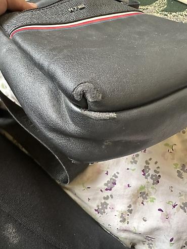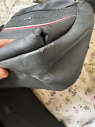 - На лицевой стороне — логотипная вставка «MY»; внутри — текстильная нашивка «Tommy Hilfiger».