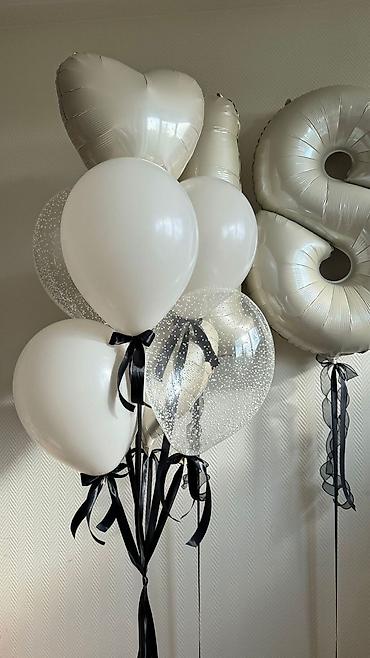Воздушные шары с гелием и индивидуальной надписью. - Наборы в спокойной палитре: белый, серый, графит, пудрово‑голубой. - Большие сферические шары диаметром XL с персонализацией: имя, дата, поздра...
