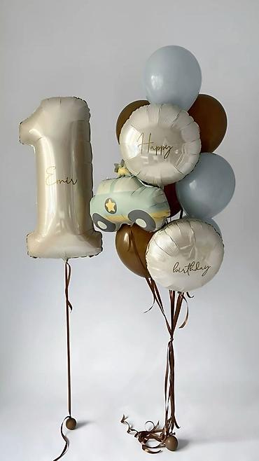 - Фольгированные фигуры: сердца, большие цифры (1, 2 и др.), автомобиль, круглые шары «Happy birthday».