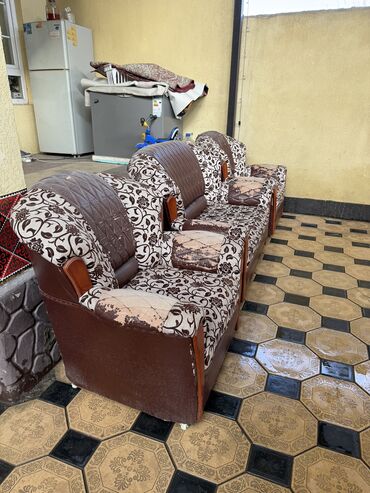 Без рассрочкиКомплект диван за 5000сом . Б/у реальный клиент болсо тушуп берем ✅. Грубо айрылган жерлери жок ❌. Кожалары сыйрылган,