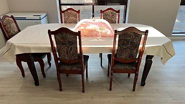 Большой обеденный гарнитур: раскладной стол + 12 стульев.Состояние отличное.Район Арча бешик Шералиева+Эртайлак. - Материал: массив/шпон дерева с глянцевым лаком. - Форма столешницы: прямоугольна...