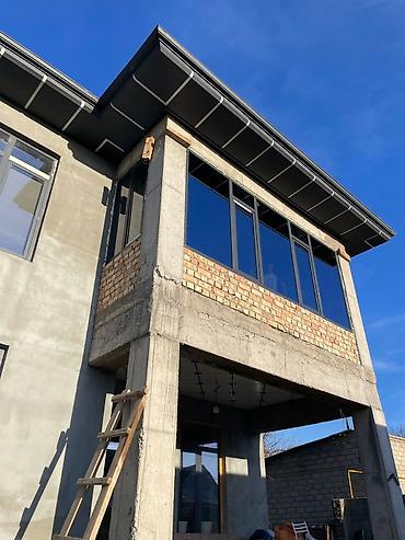 - Встроенная водоотталкивающая система кровельных свесов над витражом