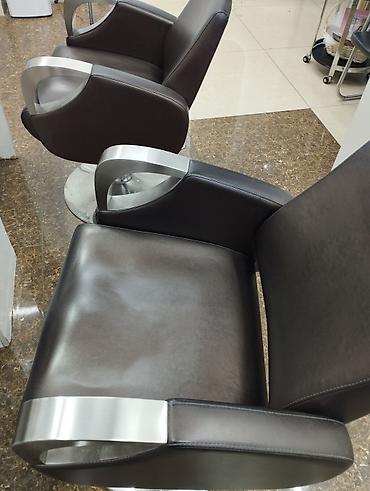 - Парикмахерское кресло на устойчивой круглой металлической базе.