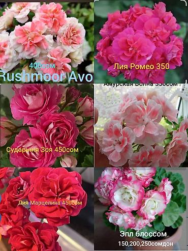 Продаю гибридные пеларгонии, новые сорта 500-800 сом, старые сорта по 300 сом. Все сорта вегетативные размножаются только черенками. Производство КР, селекции Россия, Украина. Особенности: - Комп...