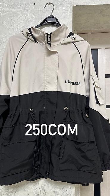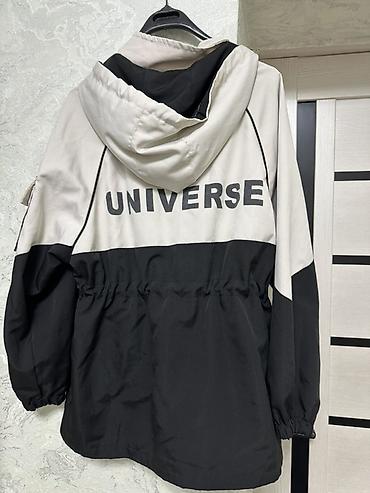 2) Ветровка/куртка с капюшоном UNIVERSE, чёрно-бежевого цвета (колор-блок)