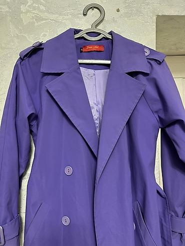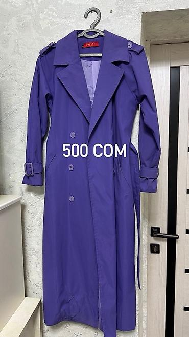 Два изделия одежды. 1) Тренч-пальто женское, фиолетовое - Двубортная