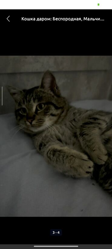 Кошка девочка возраст год стерилизована привита приучена к лотку . Находимся г Бишкек . Только ответственным людям , буду иногда писать и просить видео .