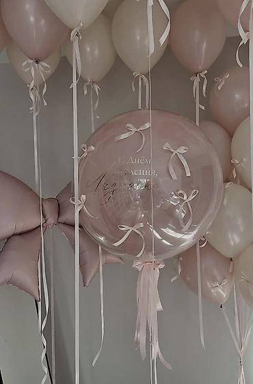 - Большие прозрачные шары-бабл с индивидуальной надписью (на русском или английском). Примеры: «С днём рождения, Доченька!», «Happy Birthday».