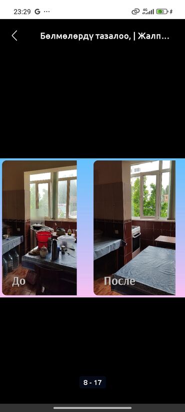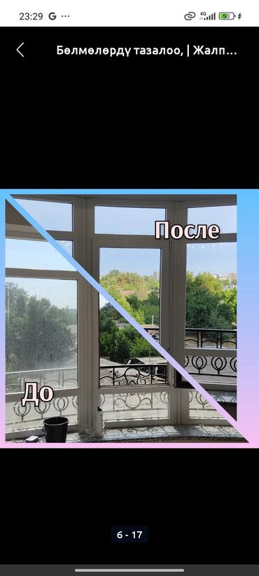 - Послестроительная/послеремонтная уборка: удаление строительной пыли, следов краски и монтажных материалов, мытьё окон и подоконников.