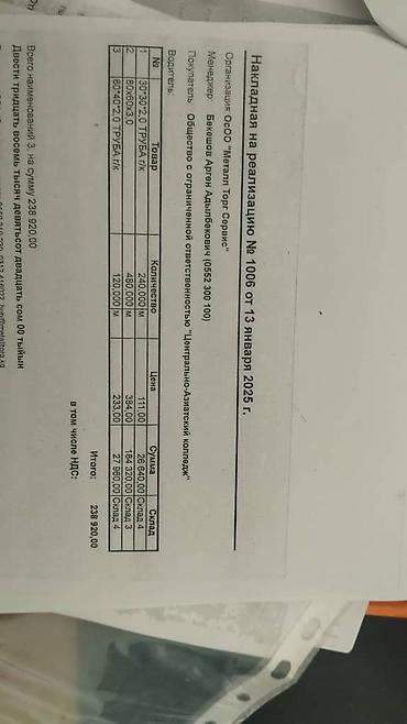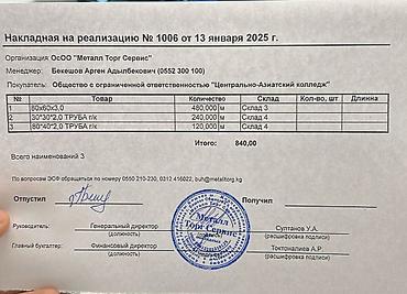 Профильные стальные трубы, комплект Состав партии по накладной №1006