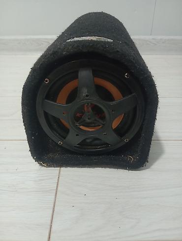 Сабвуфер KLANG в корпусе “бочка” с встроенным автомобильным усилителем.