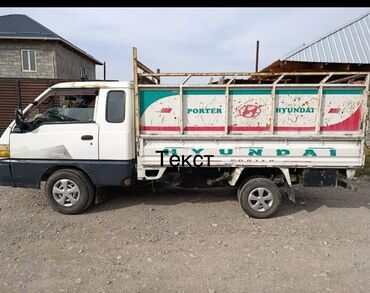 - Кузов: металлическая платформа с высокими бортами и каркасом под тент; надписи HYUNDAI/PORTER на бортах.