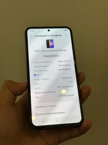 Смартфон Samsung Galaxy A 54 5 G (черный цвет). Не Эмираты, куплен в официальном магазине самсунг в Бишкеке, с чеком и паспортом (не бери ворованные). Действующая гарантия.