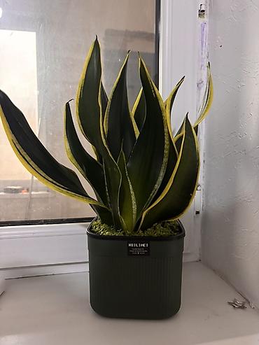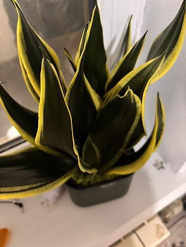 - Декоративный комнатный суккулент с плотными мечевидными листьями темно‑зеленого цвета с ярко‑желтой каймой.
