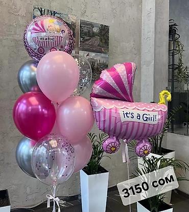 Воздушные шары и готовые наборы для праздника. - Тематика: дни рождения, выписка из роддома («It’s a Girl», «Ура! Девочка!»), юбилеи (цифры 1 и 6), детские персонажи (фольгированная кукла, коляска...