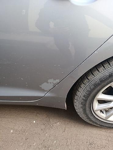 - Кузов: серебристо‑серый, 4-дверный седан. На правом заднем крыле/пороговой зоне видны участки сколов/отслоения лакокрасочного покрытия; на кромке арки и пороге есть потертости. Литые диски, шины всесезонного типа.