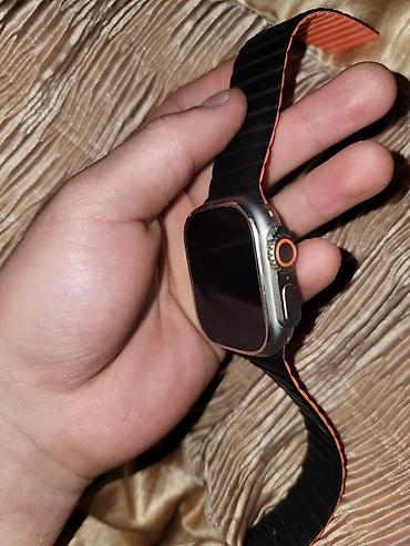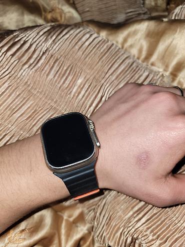 Смарт‑часы в стиле «ультра» с крупным прямоугольным дисплеем и металлическим корпусом цвета титан/серый. Боковая крутилка и функциональная кнопка для быстрого доступа к приложениям и тренировкам.
