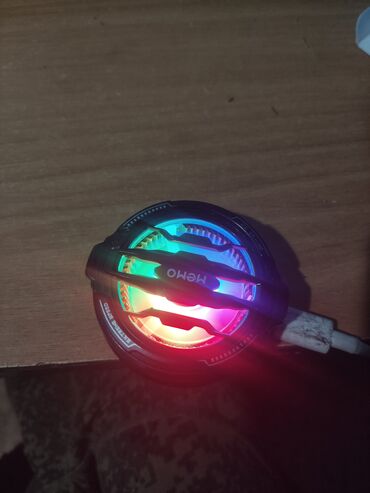 - Внешний охлаждающий кулер для смартфона MEMO Ice Machine: компактный «турбинный» вентилятор в круглой форме с защитной решёткой, подпружиненными лапками-зажимами и резиновыми накладками для фиксации на корпусе телефона. Индикаторы/маркировка по боковой части, питание от кабеля (обычно USB). Предназначен для отвода тепла во время игр и длительных нагрузок.