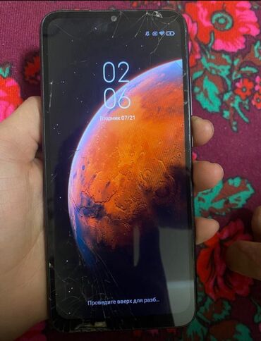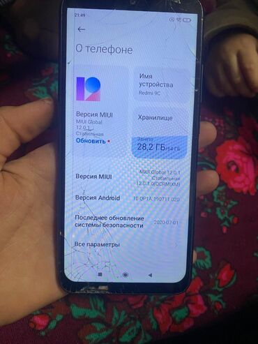- Экран с каплевидным вырезом, диагональ (по серии Redmi 9C), на фото видно рабочий дисплей.
