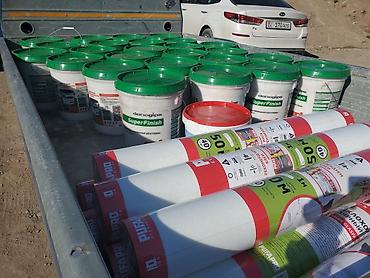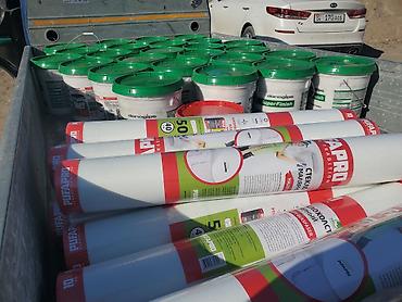 На фото также стеклохолст PUFAPRO TRADITION (рулоны 50 м, плотность 40 г/м²) для армирования и укрепления стен и потолков под покраску: