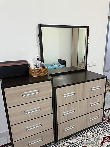 Спальный гарнитур, Б/у, Двуспальная кровать, Шкаф, Комод, Кыргызстан, МДФ, Самовывоз, цвет - Коричневый