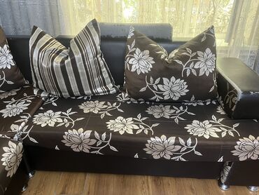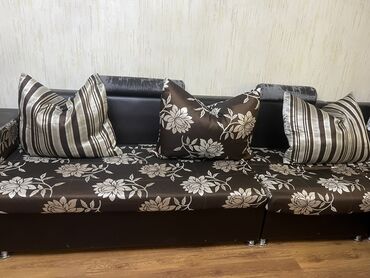 ВКЛЮЧАЕТ В СЕБЯ 6 подушек, 3 коричневые с цветочком, и 3 серые в полоску, так же включает в себе 2 подлокотника, диван среднего состояния, есть дефекты, диван кожаный, ‼️ПРОДАЕМ СРОЧНО ‼️ ПО ПРИЧИНЕ ПЕРЕЕЗДА