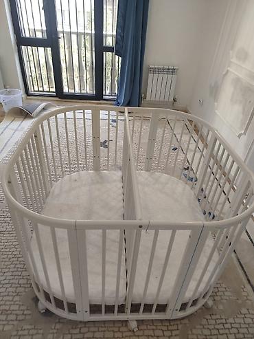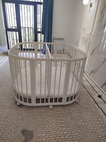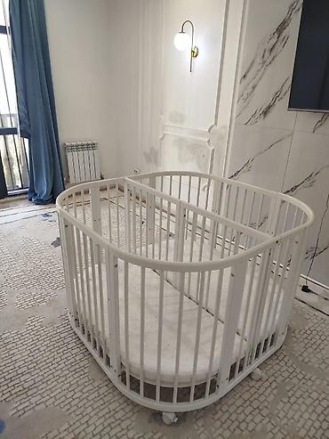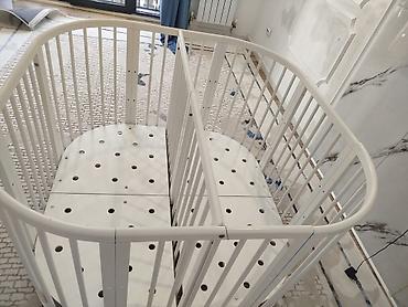 - Конструкция 2-в-1: можно использовать как кроватку для новорождённого и как просторный манеж/игровой вольер.