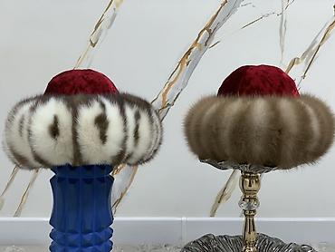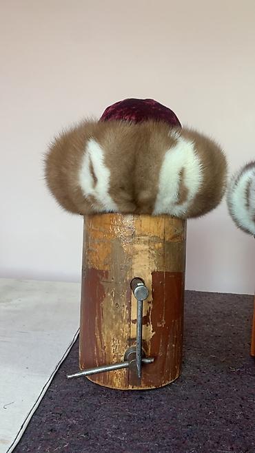 Набор женских головных уборов. 1) Шляпа фетровая, Россия. Размер 56–58. Декор — узкий кожаный ремешок и бант. Цена: 4600 сом (указано на фото). 2) Берет из норки. Размер 56–58. Цена: 3000 сом (ук...