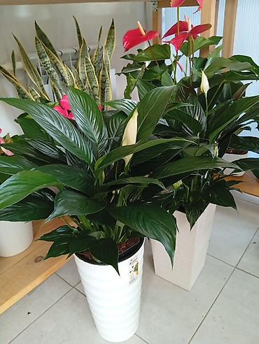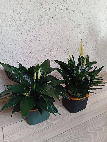 - Спатифиллум — компактные кустики с темно‑зелёной листвой и белыми «парусами»-соцветиями. Хорошо растёт в помещениях со стабильной комнатной температурой и без прямого солнца.