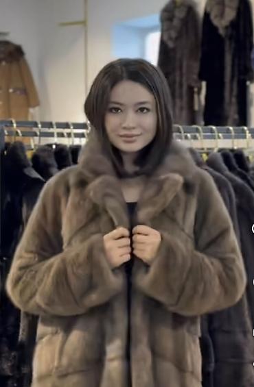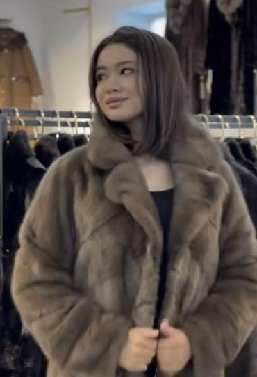 Крой: поперечная раскладка меха, объемный английский воротник с возможностью застегнуть под горло.