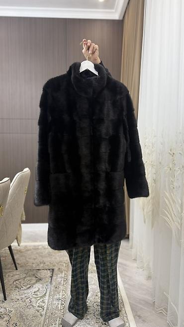 Шуба из натурального меха норки, цвет глубокий чёрный.