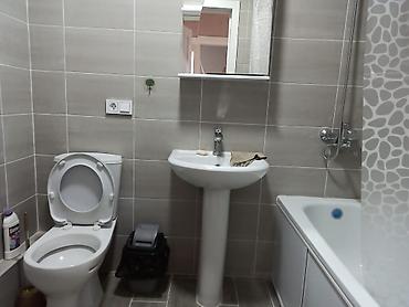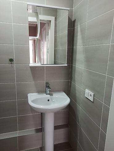- Санузел: облицовка керамической плиткой, тумба‑зеркало и раковина с однорычажным смесителем, розетка возле зеркала.