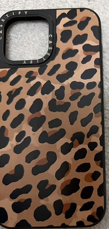 - Дизайн: фирменный животный принт (леопард), матовая поверхность с тактильными пятнами, рамка в черном цвете. На ободке камеры гравировка CASETiFY.