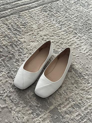Балетки женские, белые, с квадратным носом.