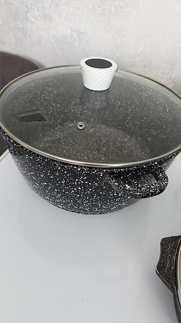 - Кастрюля/утятница из литого алюминия с мраморным антипригарным покрытием, черная «крапинка». Стеклянная крышка с отверстием для выхода пара и удобной термостойкой ручкой. Две литые боковые ручки.