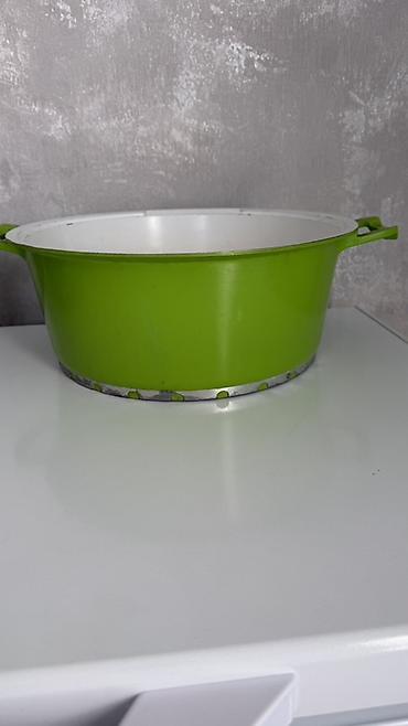 - Таз/кастрюля зеленая с белым внутренним покрытием, с двумя боковыми ручками. Утолщенное дно.