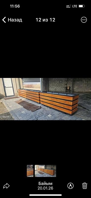 Также на фото — длинные уличные ящики-плантеры из дерева с металлическими вставками для высадки вдоль стен и ограждений. Подходят для создания живых бордюров и пряных грядок.