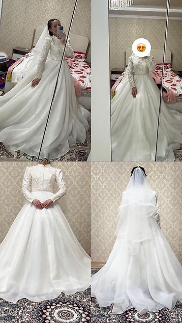 - Фата: многослойная, светлая, средней длины, в комплекте на фото.