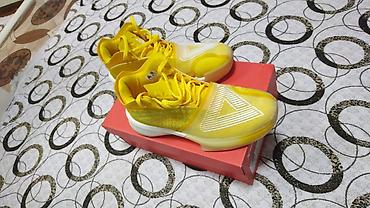 Баскетбольные кроссовки PEAK (модель с фирменным треугольным логотипом), ярко‑жёлтый цвет.